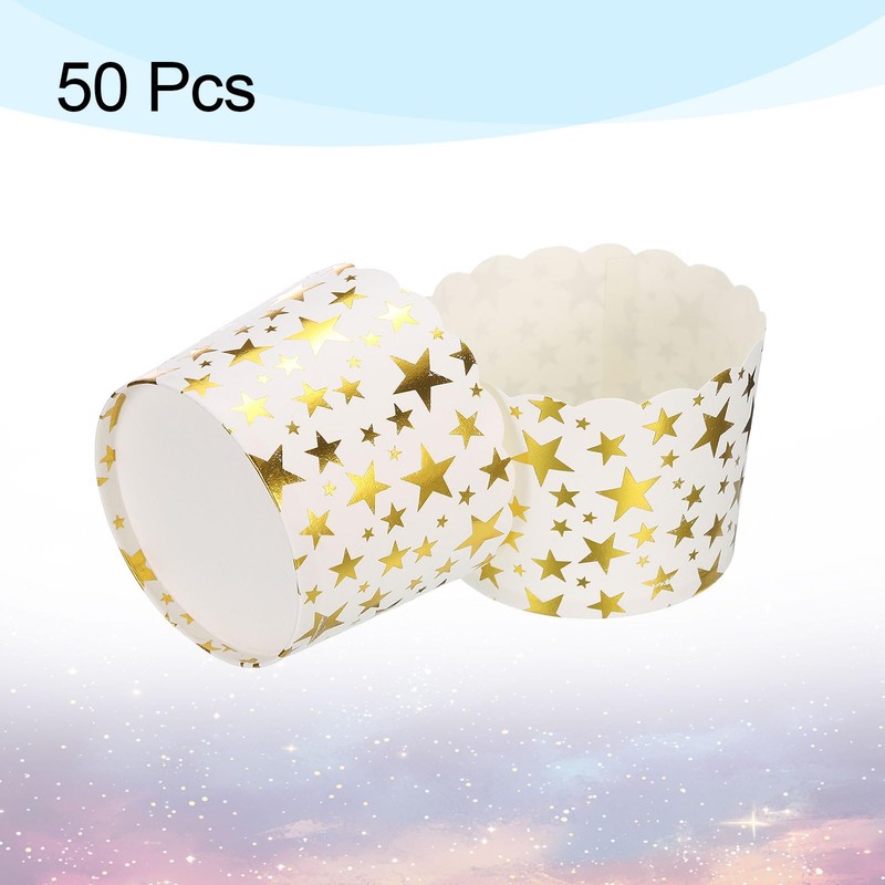 HARFINGTON 50Pcs Paper Baking Cups 6oz Cupcake Wrappers Scalloped Muffins Cases Liners Disposable Greaseproof Containers for Birthday Party, Star