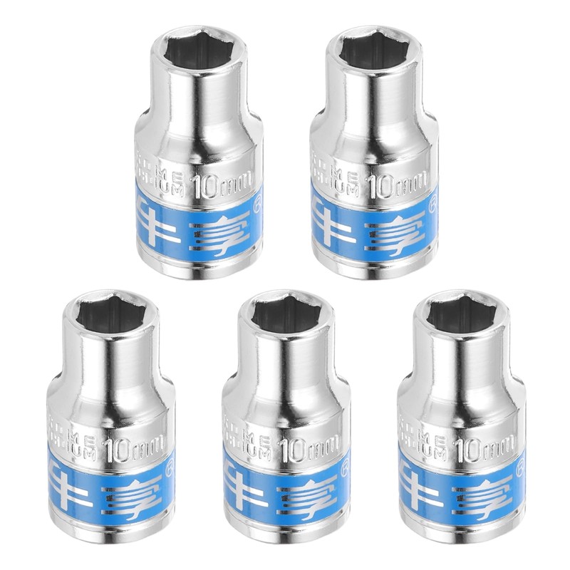 HARFINGTON 5pcs 1/2 Inch Drive 6-Point Socket 10mm CR-V Metric Shallow Socket Electric Wrench Socket for Mechanical Auto Repair, Silver Tone & Blue
