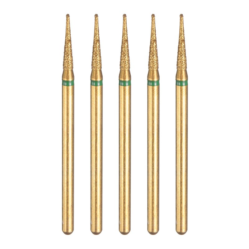HARFINGTON 5pcs 100-120 Grits Diamond Grinding Bit 2mm Tapered Head 2.35mm Shank 10mm Length Titanium Plated Stone Sanding Drill Bits Rotary Tool for Nails Grinding Polishing
