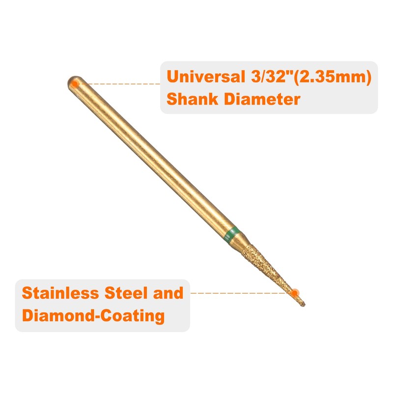 - Material - This grinding bit is made of stainless steel, which has excellent heat and corrosion resistance, and is covered with a sharply titanium plated diamond particle coating that will not fall off or deform due to repeated use