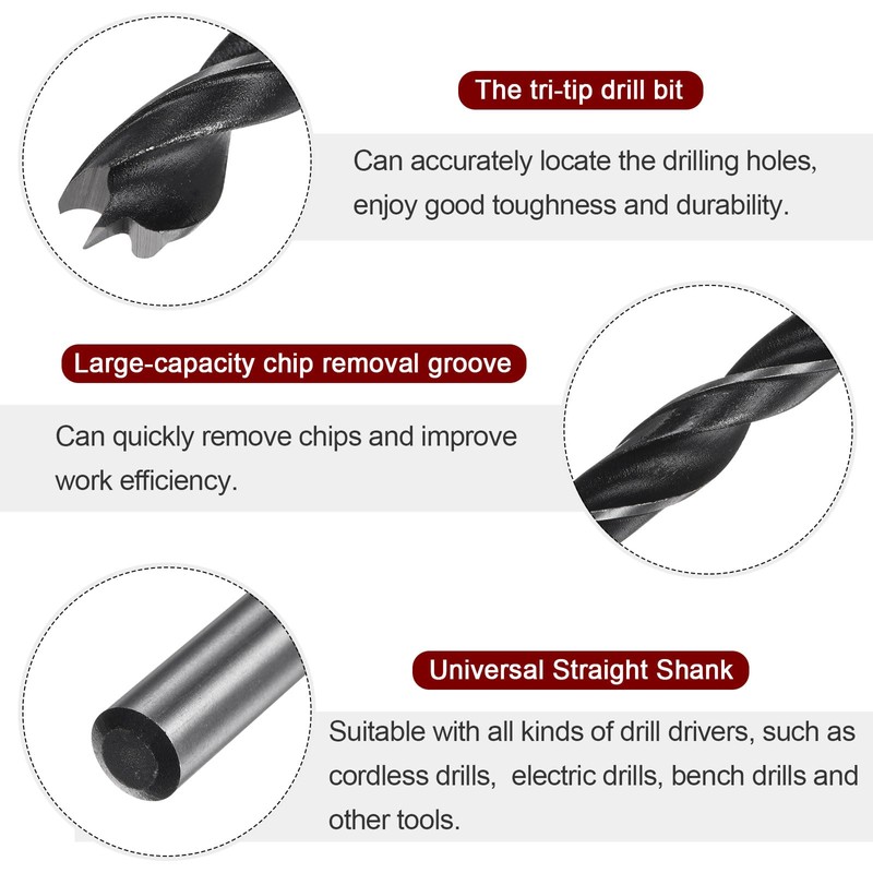 - Feature - The brad point tip can provides precision accuracy for starting your drilling hole, and the widened and deepened chip removal groove can quickly remove chips, which improves your working efficiency.