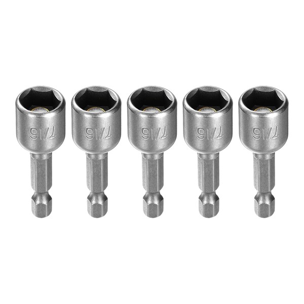 HARFINGTON 5pcs Hex Nut Driver Drill Bit 7/16" 6-Point Socket 1/4" Hex Shank 1.9" (48mm) Long Magnetic Nut Setter CR-V Steel Quick-Change Nut for Power Drills Impact Drivers