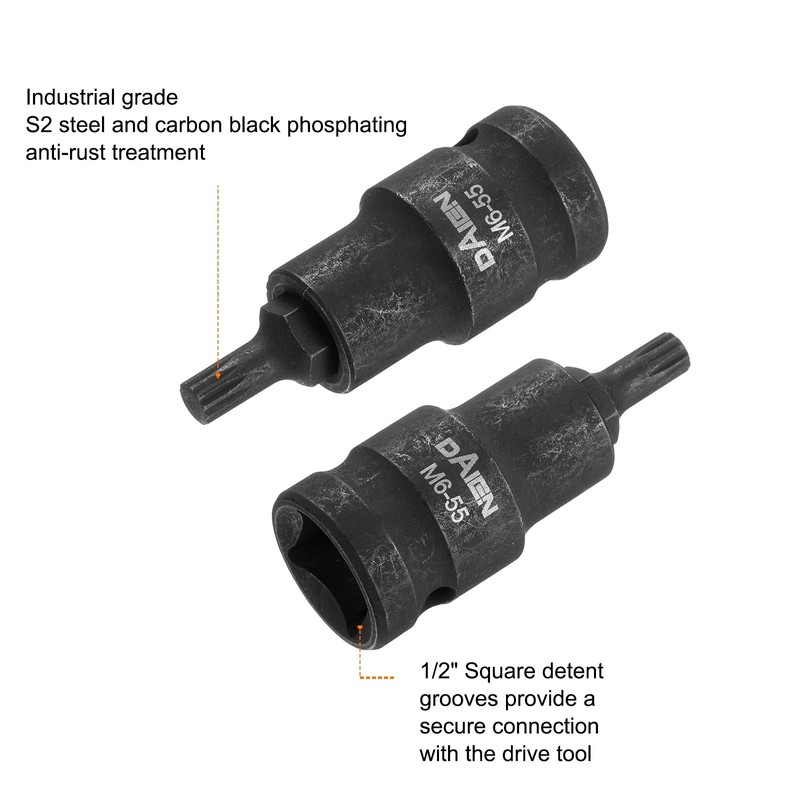 - Notice - The interface is a 1/2" square drive, tools with a 1/2" drive can be used directly, and tools with other drives must be equipped with a 1/2" connecting rod; please confirm whether the socket specifications correspond to the screws before purchasing