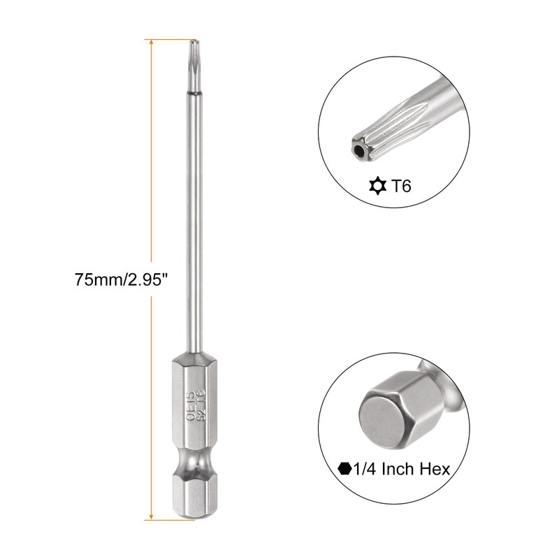 - Size - Type: T6; Length: approx. 75mm(±2)/2.95"