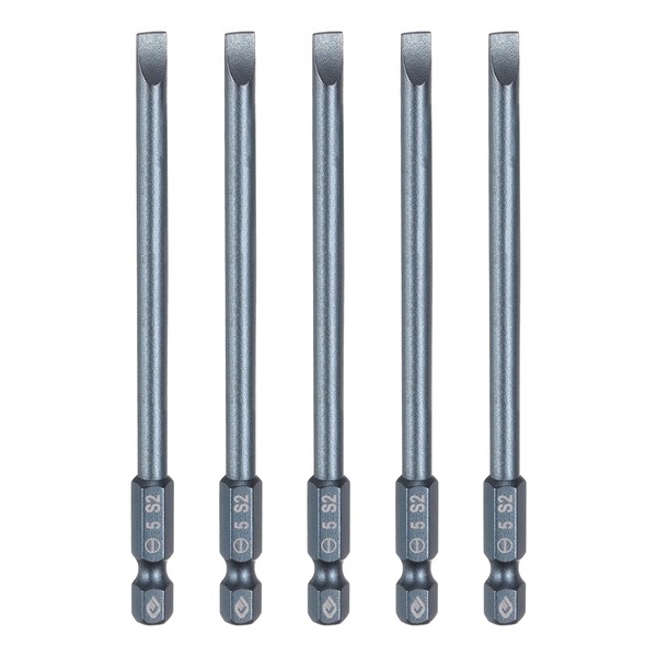 HARFINGTON 5pcs SL5 Magnetic Slotted Screwdriver Bits 5mm S2 Steel Flat Head Screwdriver Bit 1/4" Hex Shank Screw Driver Drill Bits 100mm (4") Long for Screws