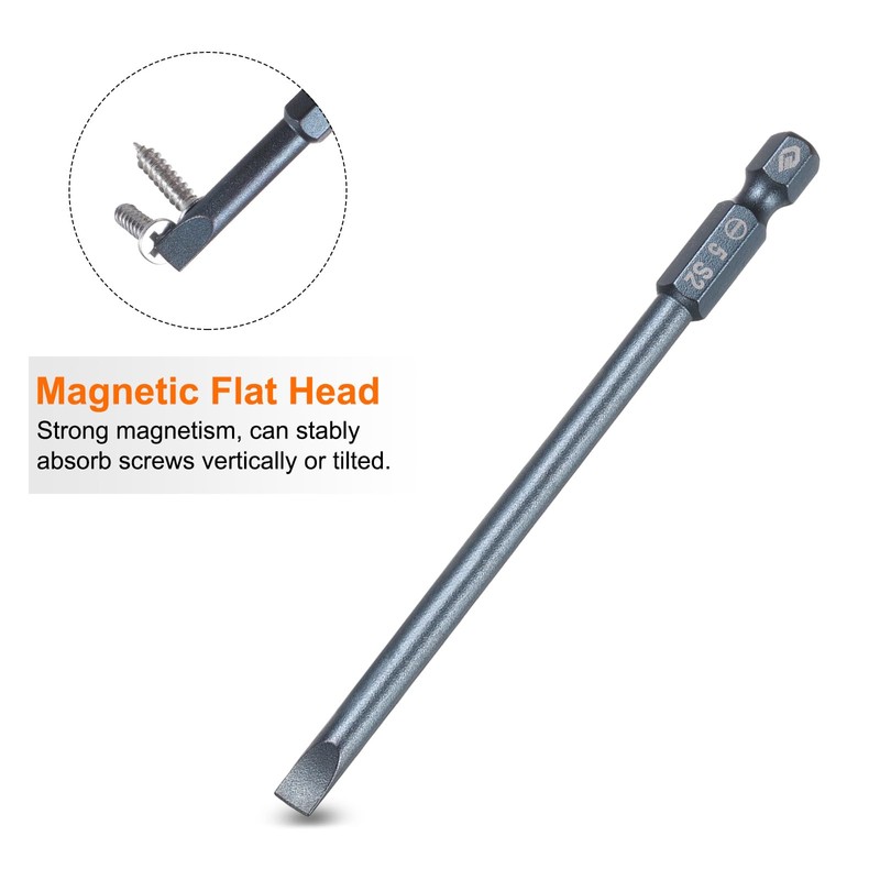 - Size - Magnetic slotted screwdriver bit size: SL5 (5mm), Total length: 100mm / 4", Hex Shank: 1/4". Each screwdriver head is clearly engraved with the model for easy identification.