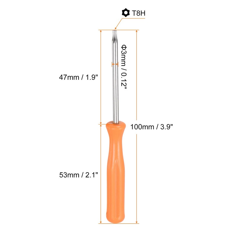 • Size - Bit Type: T8H, Total Length: 100mm / 3.9", Rod Size: 3 x 47mm / 0.12" x 1.9" (D*L), Handle Length: 53mm / 2.1".