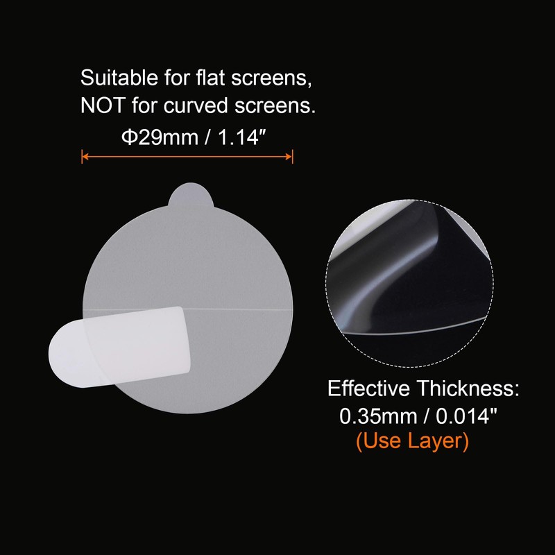 - Size - Fit glass screen size: 29mm / 1.14" (suitable for flat screens, not for curved screens.); effective thickness: 0.35mm / 0.014" (use layer); compatible brand: universal; shape: round. (Measure the flat area of the watch mirror before purchasing. If there is a chamfer area, it should be excluded.)