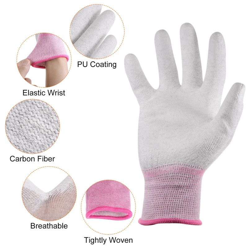 - Package Contents - You will receive 6 Pairs of conductive carbon fabric palm coating gloves(electrostatic discharge gloves) for cleaning rooms, laboratories, PCB factories, or electronic manufacturing.
