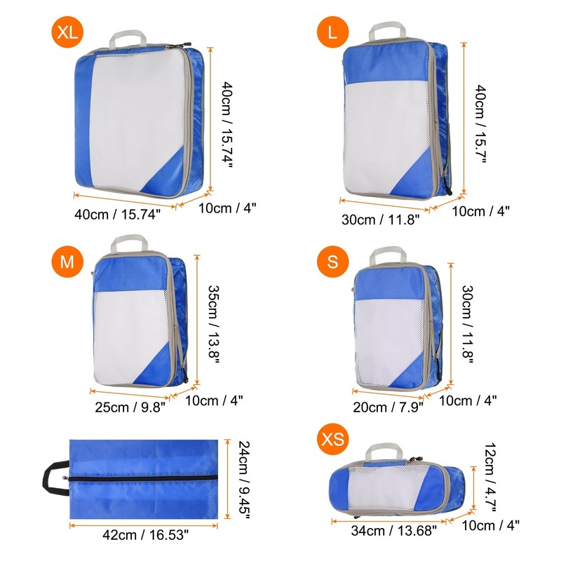 • Size - XS:34x12x10cm / 13.68x4.7x4inch;S: 20x30x10cm / 7.9x11.8x4inch; M: 25x35x10cm / 9.8x13.8x4inch; L: 30x40x10cm / 11.8x15.7x4inch; Shoe bags:24x42x10cm / 9.45x16.53x4inch.One small, medium and large size each.