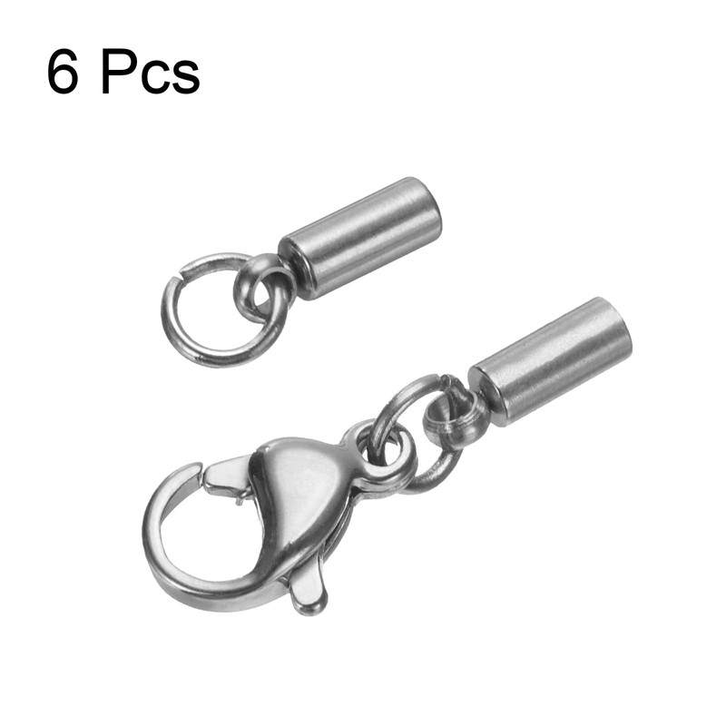HARFINGTON 6pcs Cord End Cap 2mm ID Lobster Claw Clasp End Caps Stainless Steel for DIY Bracelets Necklaces, Silver Tone