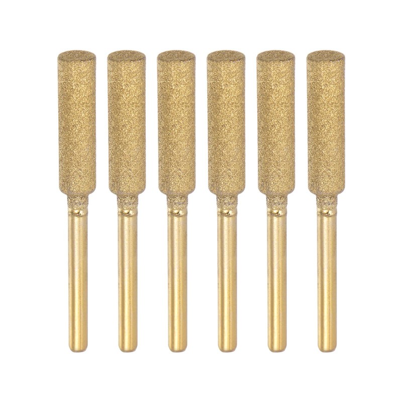 HARFINGTON 6pcs Diamond Coated Chainsaw Sharpener Bits 7/32" 5.5mm Cylinder Head, Titanium Plated Electric Chain Saw Grinder