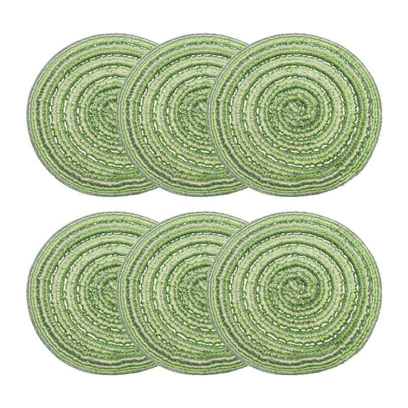 HARFINGTON 6pcs Round Braided Placemats 4" Non-Slip Round Table Mats for Dining Tables Washable Heat Insulation Woven Placemats Indoor Outdoor for Family Holiday Dinner, Green