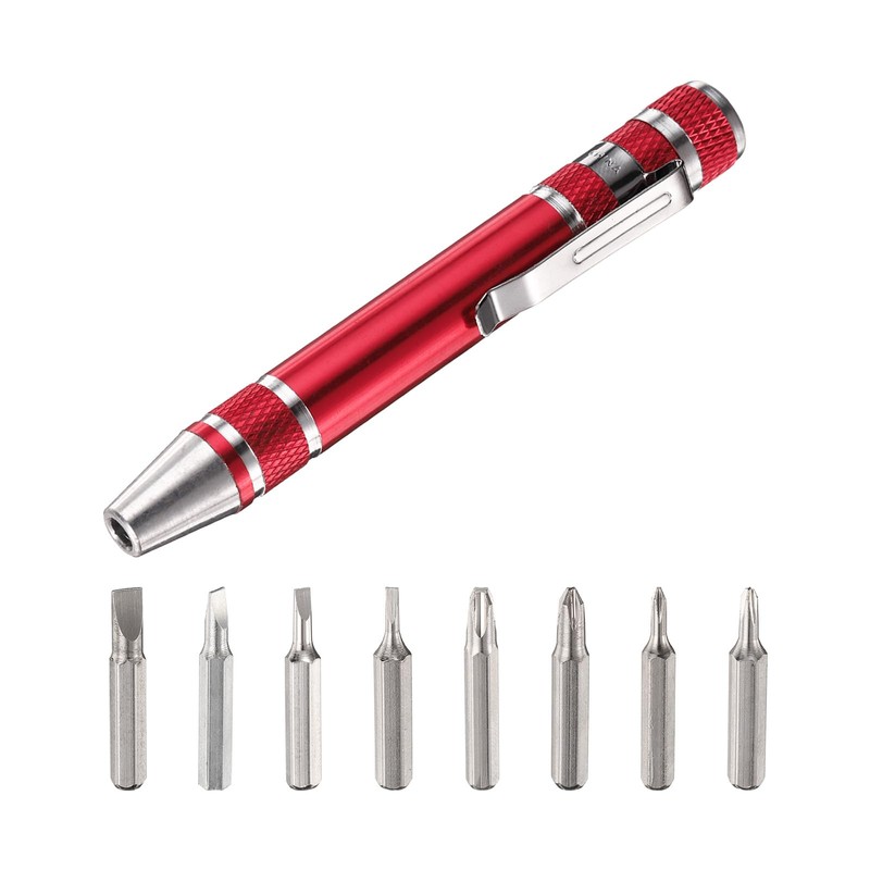 - Features - The tip of the pocket screwdriver is equipped with a magnet that holds screws securely in place and prevents them from falling or being lost. This magnetic screwdriver is designed like a pen with 8 different screwdriver heads inside the pen, which makes it portable and fits easily into your pocket or toolbox.