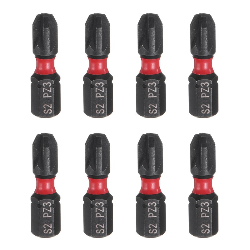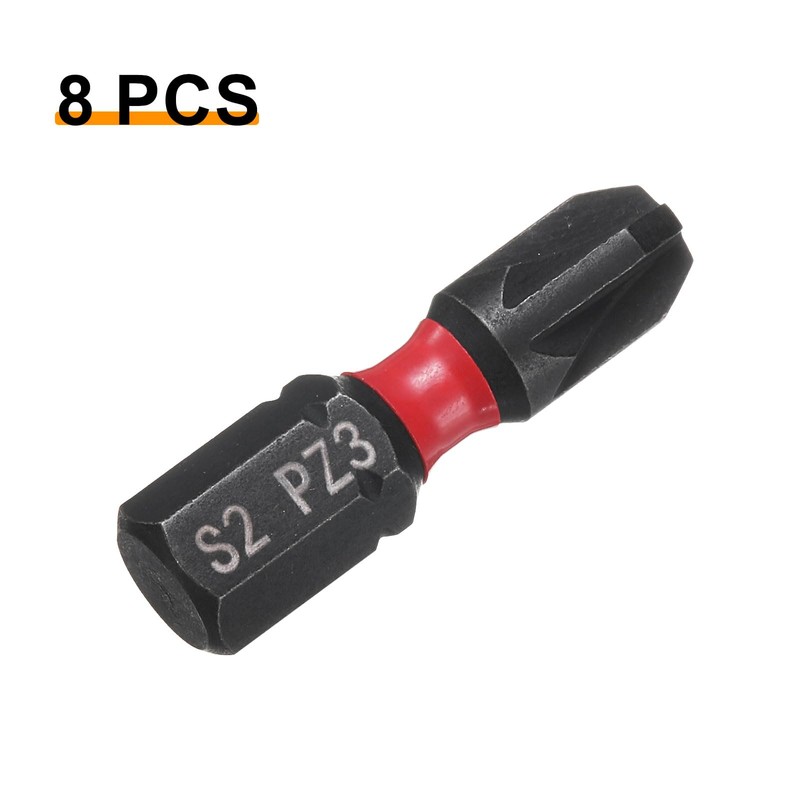• Size - PZ3; Total Length: 25mm / 1"; Shank: 6.35mm/ 1/4 inch hex shank; Phillips slotted drill bit specifically designed for driving screws into wood, metal, and other materials effortlessly. Can accurately tighten screws without damaging screws and screwdriver bits