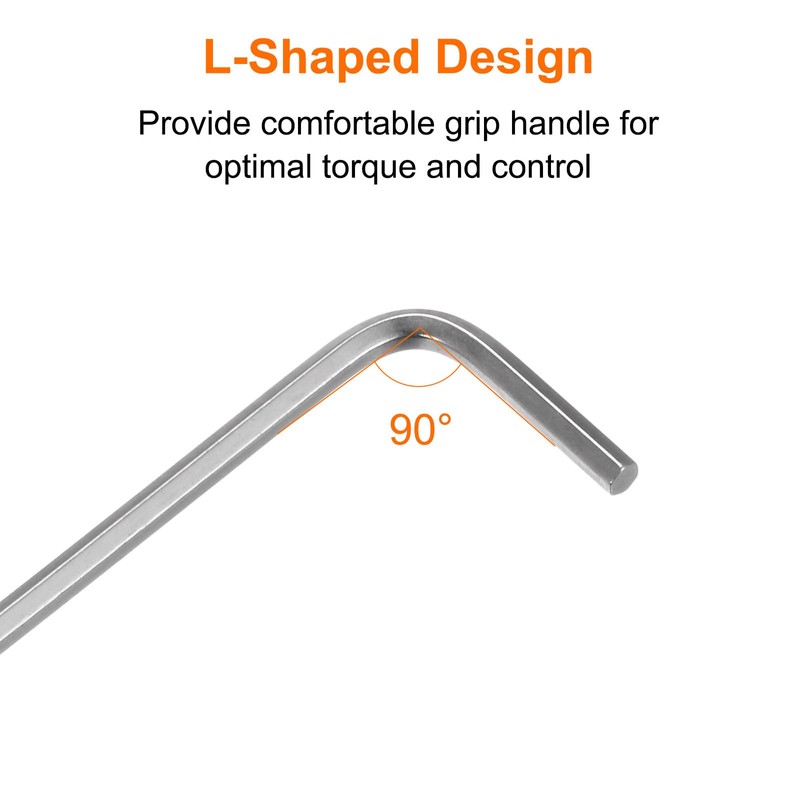 - Material - L key wrench is quenched and heat-treated chrome vanadium alloy steel (48-52 HRC), nickel plated surface, high strength and hardness, rust-proof and wear-resistant.