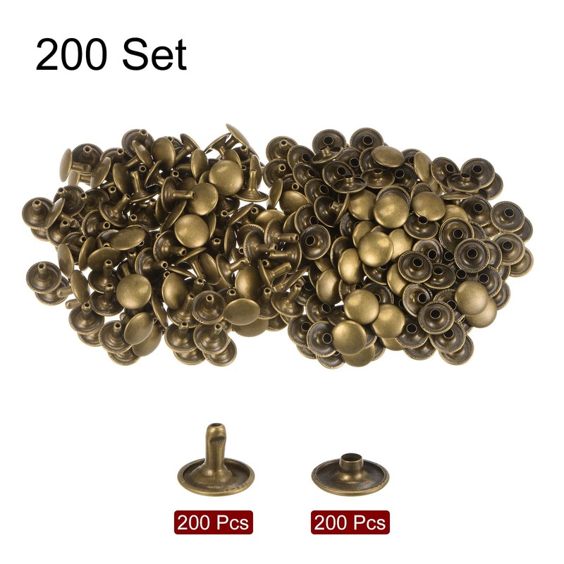 HARFINGTON Bronze 12mm x 10mm Double Cap Leather Rivets and Snaps, 200 Sets, Metal Fasteners with 3pcs Setting Tools