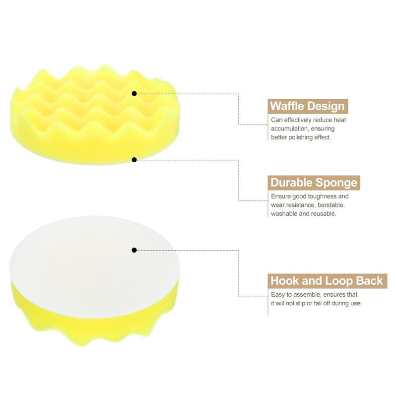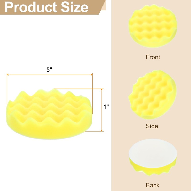 - Size - Diameter: 5", Thickness: 1", Color: Yellow; Package Content: 1pcs x Buffing Sponge Pads.