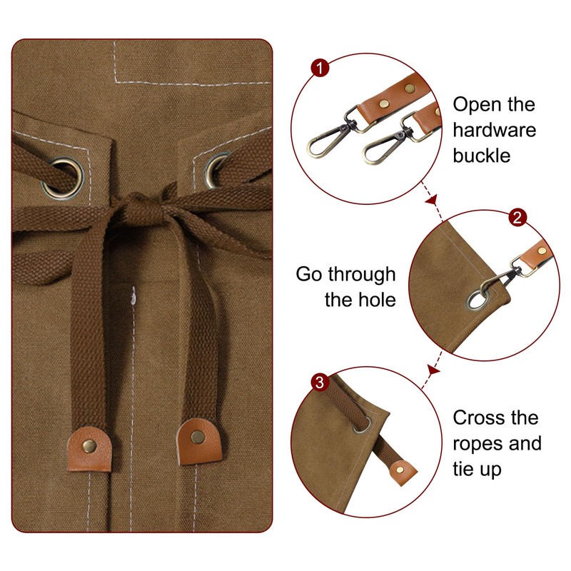 - Material - The cooking apron is made of canvas, durable and waterproof which is easy to finish, not easy to fade and can be machine washed in cold water many times.