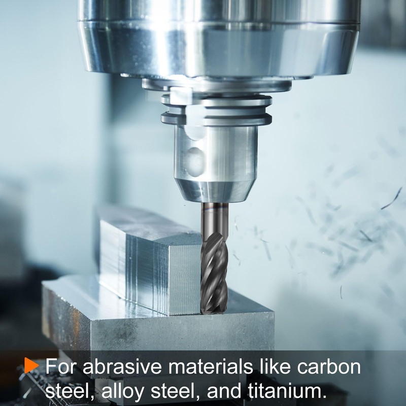 - Material - TiAlN (Titanium Aluminum Nitride) coating provides high hardness, increased lubricity, and improved heat resistance. Performs well under high-temperature cutting conditions and provides good wear resistance. Micro-grain carbide mill bit has high hardness, high wear resistance, high strength, enhanced rigidity and high temperature resistance.