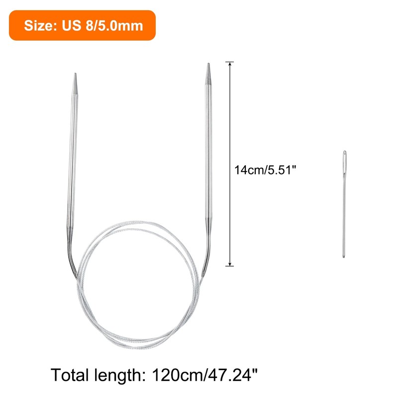 - Size - Knitting Needles have a total length of 120cm/47.24 inches and a needle length of 14cm/5.51 inches; The needle is US 8/5.0mm in size