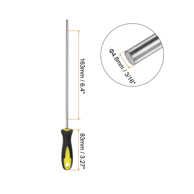 - Size - File Teeth Diameter: 4.8mm / 3/16"; File Teeth Length: 163mm / 6.4"; Handle Length: 83mm / 3.27".