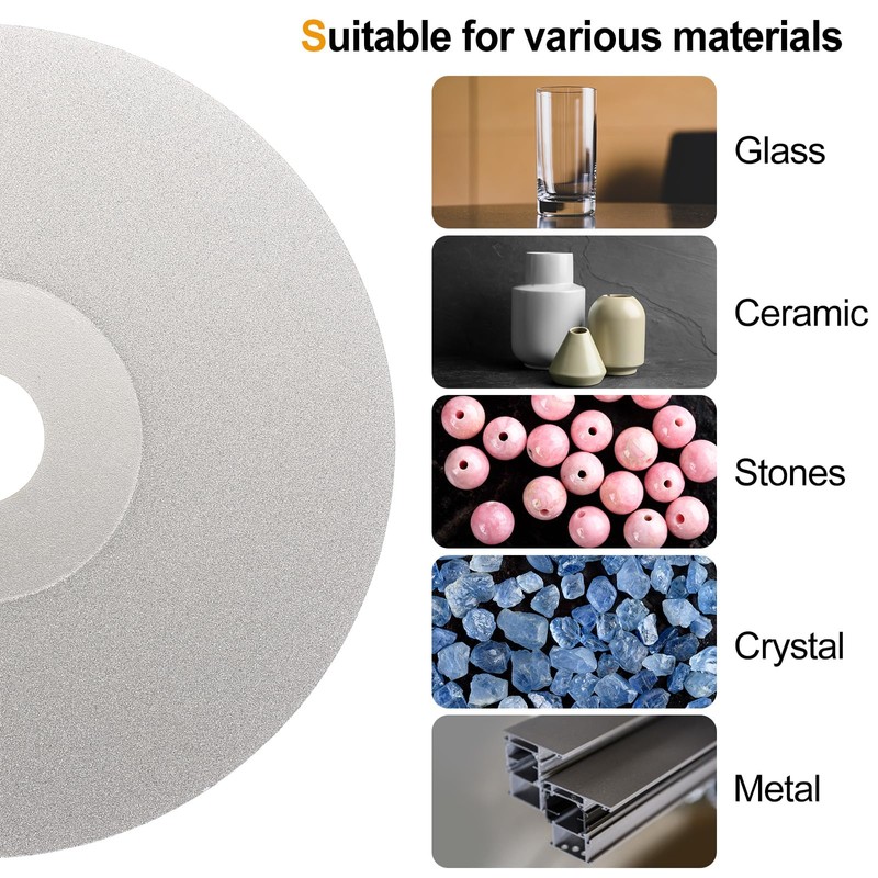 - Great Cutting and Polishing Performance - The diamond grinding wheel is designed for sanding and polishing various materials such as ceramics, glass, stones, marble, crystal, agate, tungsten steel, carbide, metals, jewelry, jade, etc.