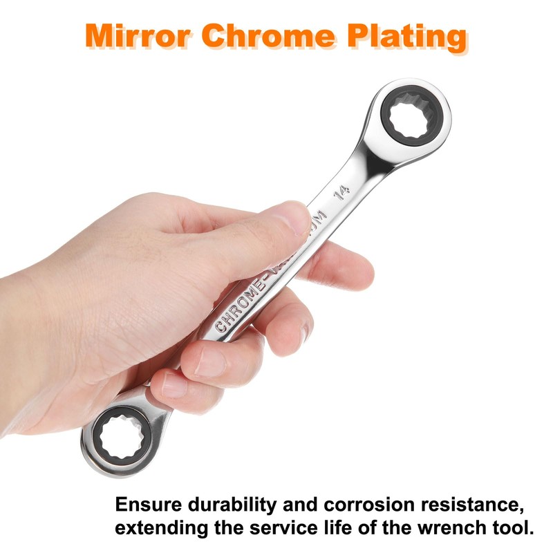 • Material - This double ratcheting wrench is made of heat-treated CR-V steel with high strength and high wear resistance, which is very suitable for twisting screws or nuts. The surface is mirror chrome plating to ensure durability and corrosion resistance, extending its service life.