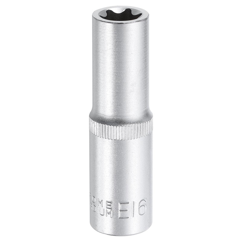 - Size - Drive: 1/2"; Socket Specifications: E16; Total Length: 78mm / 3.07"; Package includes: 1 x External Torx Socket. The specifications of the socket are visible and engraved on the surface. You can quickly switch between different socket sizes to improve work efficiency.