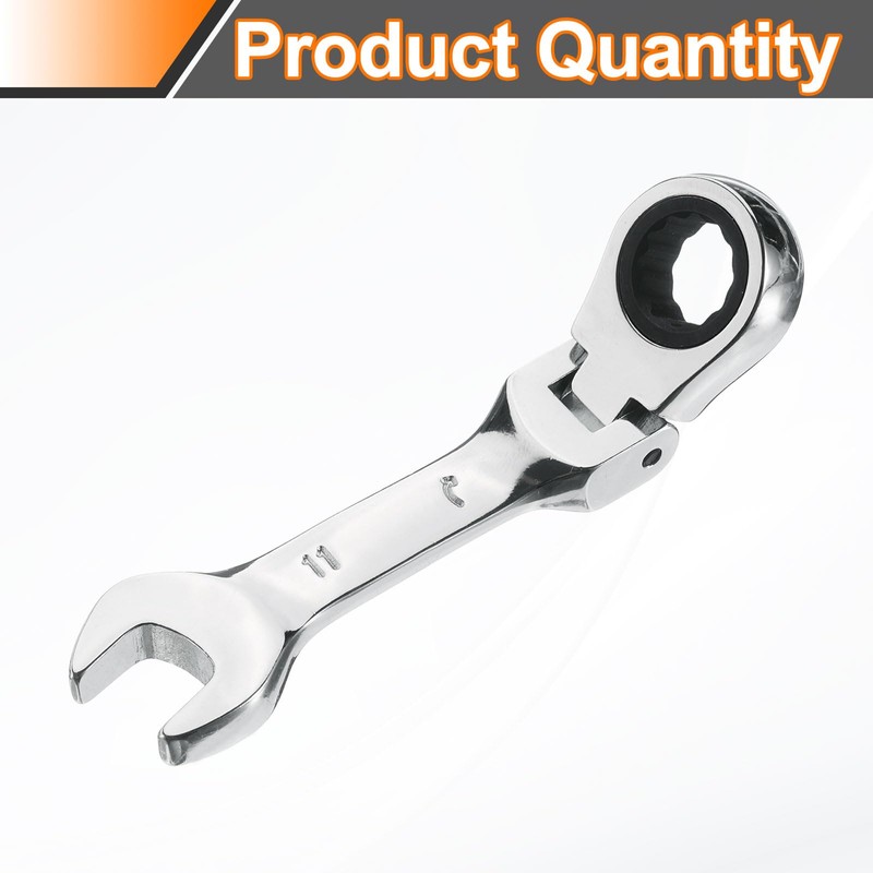 HARFINGTON Flex-Head Ratcheting Combination Wrench 11mm Metric 72-Teeth CR-V Steel Polished Chromium Plating Open End Ratchet Spanner Gear for Fasteners Nut Bolt