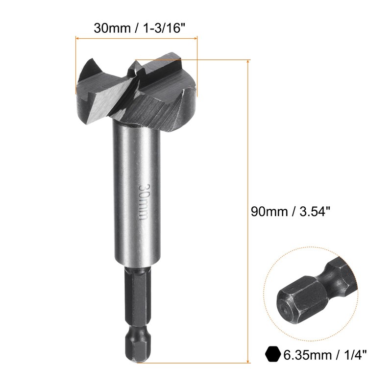 - Size - Drilling Diameter: 30mm / 1-3/16"; Shank Diameter: 6.35mm / 1/4"; Total length: 90mm / 3.54"; Shank Type: Hex Shank; Style: Multi-Tooth Flat Wing Drill Bit; Surface Treatment: Spray Coating.