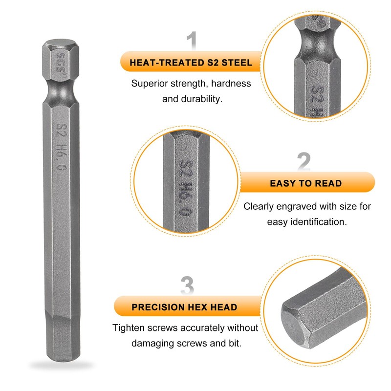 - Material - Industrial grade hex flat tip screwdriver bit is made from specially heat-treated S2 steel for superior strength, hardness and durability, with a sandblasted surface for a textured effect for enhanced grip and corrosion resistance.