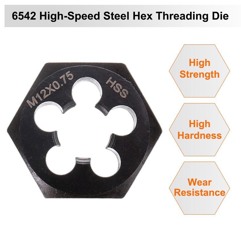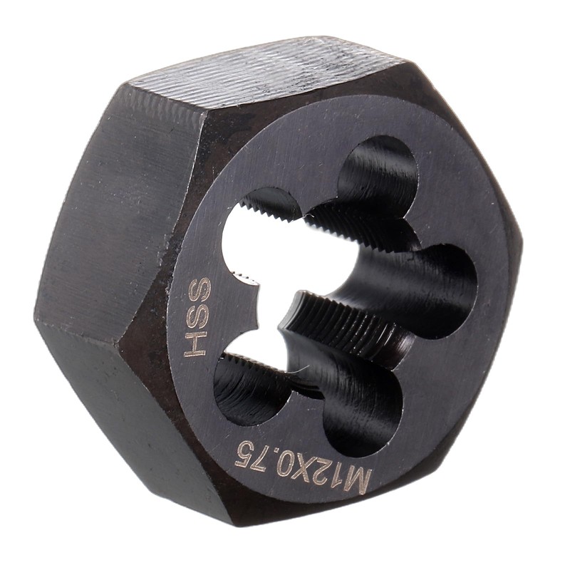 HARFINGTON Hex Threading Die M12 x 0.75 Metric Thread Right Hand High Speed Steel Rethreading Fixed Die Screw Cutting Tapping Repair Tool
