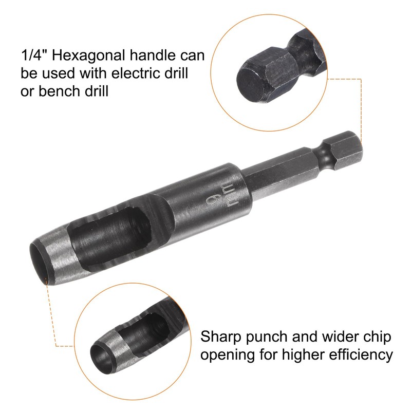 - Application - The leather hole-cutting tool can be used with an electric drill or drill press, widely used for punching leather, belts, soft plastics, rubber, PVC boards, and other materials. It's a common tool for families, craft enthusiasts, and making studios.