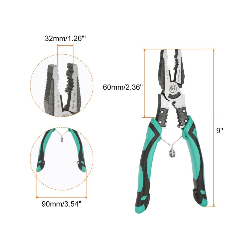 - Size - Length: 9 inch; Cutting Capacity: 2mm (Steel wire); Width: 60mm/2.36 inch; Handle Width:90mm/3.54inch; Wire stripping: Suitable for SOLID 10, 12, 14, 16, 18; STRANDED 12, 14, 16, 18, 20 wires, easy to strip without damaging the wire core.