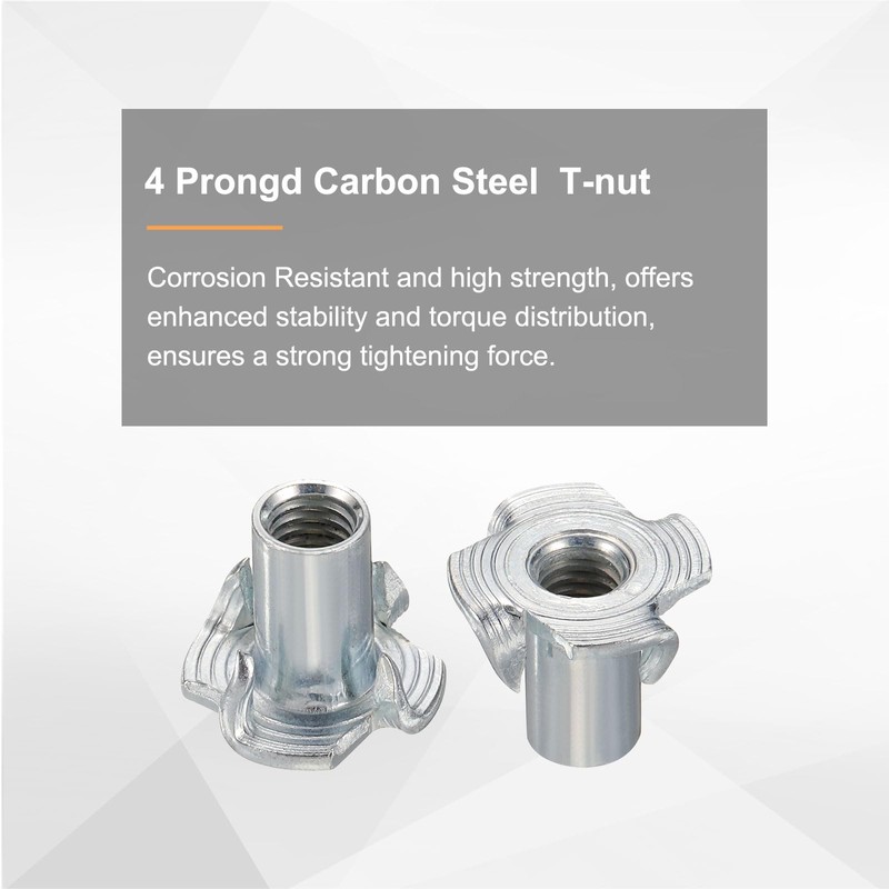 - Not Easy to Loose - Featuring a four-pronged secure seating design, Tee Nuts offers enhanced stability and torque distribution. This design ensures a strong tightening force, preventing loosening and enhancing connector durability.