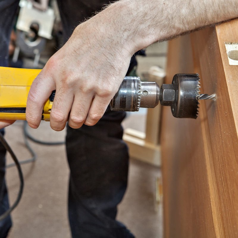 The center drill bit and spring-loaded guide ensure precision and control, suitable for cutting holes for pipes, and creating openings for cables and wiring.