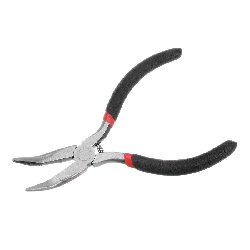 HARFINGTON Mini Bent Nose Pliers 5 Inch Toothed Curved Precision Plier with Black Plastic Handle for DIY Crafts Jewelry Making