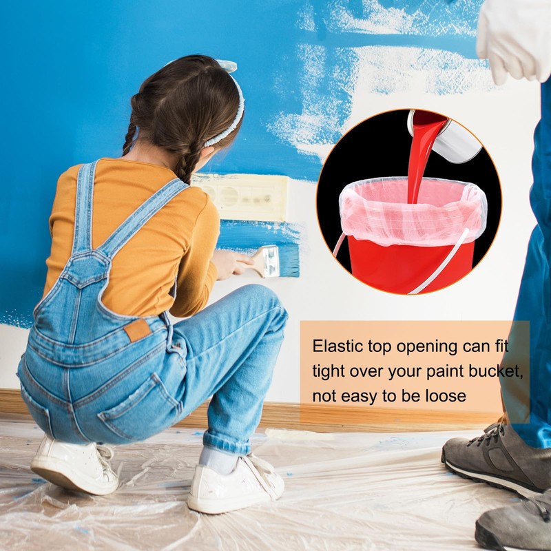 - Size: 250 µm fine mesh paint strainer bags with elastic top opening. Perfect for getting fit into 5 gallon pails, an elastic top to ensure a tight fit over your paint bucket, not easy to be loose.