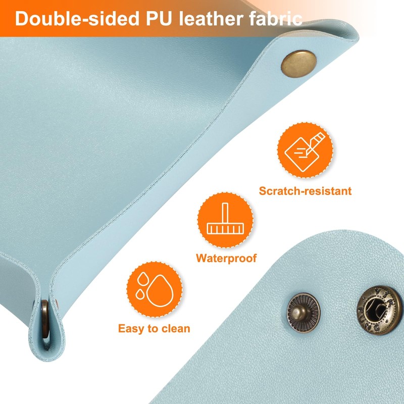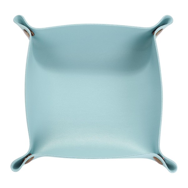 HARFINGTON PU Leather Valet Tray Unisex Folding Small Catchall Tray Portable Entryway Table Tray Nightstand Bedside Desk Tray for Key Wallet Watch Coin Jewelry Dice, Light Blue