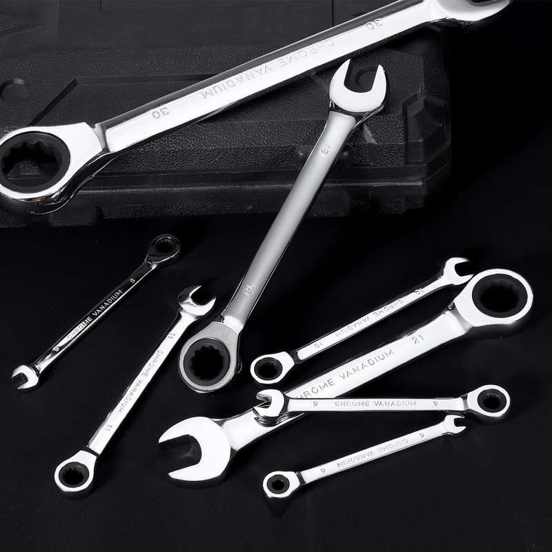 - Application - Our ratcheting combination spanner set can be widely used to tighten or loosen nuts and bolts in many narrow spaces. Including motorbike repair, car repair, home projects, bike repair, mechanical maintenance, garage projects and more. Choose the right size to buy according to your work needs.