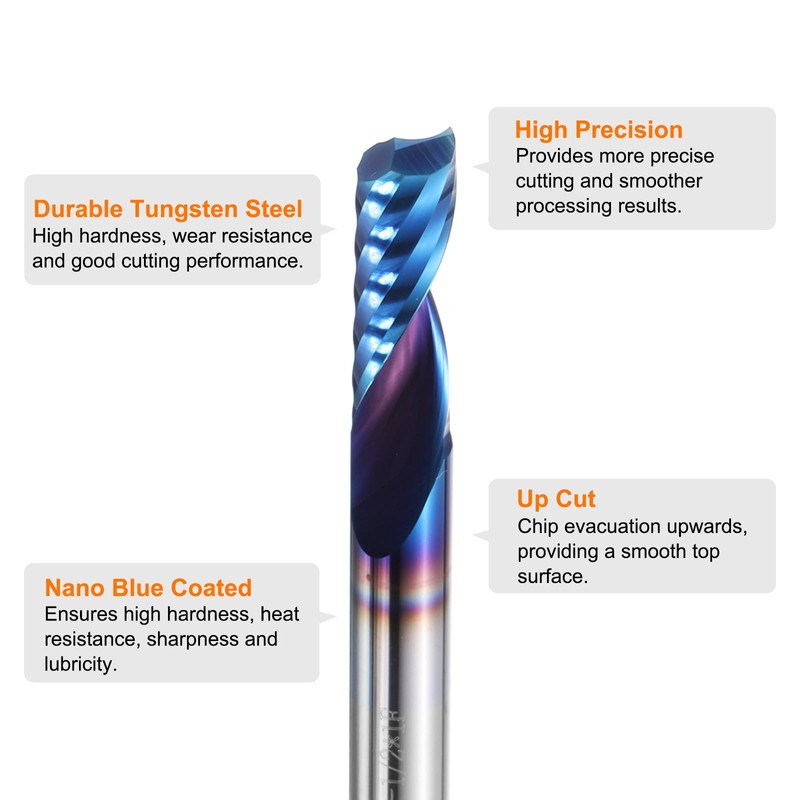 - Feature - 1 flute and spiral design of the end mill router bits facilitate the smooth discharge of chips and avoid blockage during cutting. Precision cutting edges ensure clean and accurate cutting.