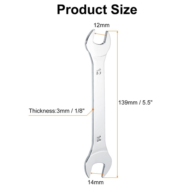- Size - These ultra-slim 3mm (1/8 Inches) metric open end wrenches have dual open ends measuring 12mm and 14mm and a total length of 139mm / 5.5 Inches, enhancing versatility and utility with each tool.