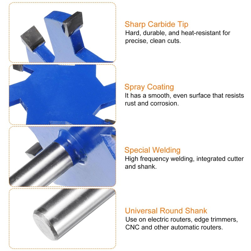 • Usage - Use on electric routers, edge trimmers, CNC and other automatic routers as well as hand-held and table-mounted portable routers (such as woodworking engraving machines, trimming machines). Rabbet router bit can be adjusted to achieve the desired depth and width of the slot or rabbet.