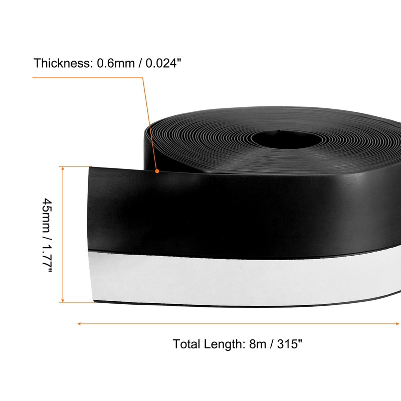 - Size - The total length of the sealing strip is 8m (315 inch / 26.25 feet), the width is 45mm / 1.77 inch, thickness is 0.6mm / 0.024 inch.
