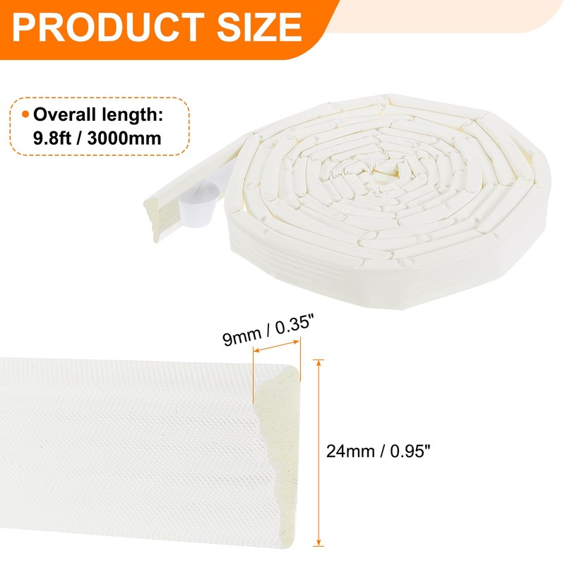 - Size - The total length of the sealing strip is 9.8ft / 3000mm, the width is 0.95" / 24mm, height is 0.35" / 9mm. Suitable for sealing gaps of 0.14"-0.35" (3.56mmm-9mm).