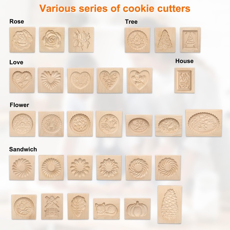 - Application - Wooden baking cookie moulds can be used not only for biscuits, but also for muffins, fudge, candies, soft fruits, cheeses, biscuits, chocolates, providing you with a thoughtful service for making delicious food and decorating cakes or pies!