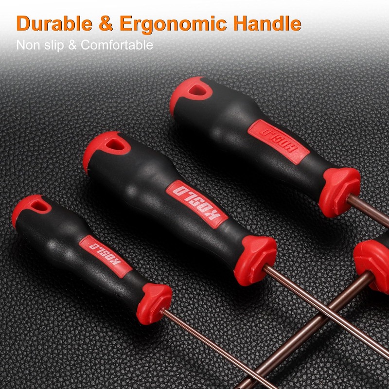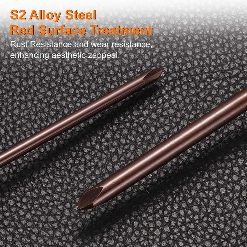 - Material - Made of heat-treated S2 alloy steel with a red surface treatment feature excellent rust resistance and wear resistance, while also enhancing aesthetic appeal. The double injected high impact PP+TPR handle provides a comfortable grip and ergonomic design for efficient power transmission during repairs and crafts.