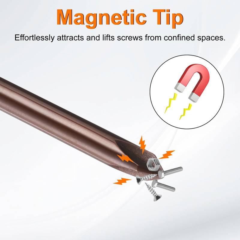 - Feature - The magnetic tip makes your work easier. It easily attracts and lifts screws from tight areas, saving you time and increasing your productivity. The handles provide a comfortable grip and ergonomic design for efficient force transfer during repair and production.