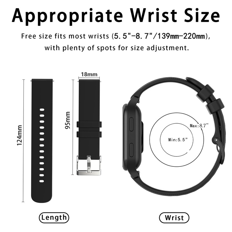 - High Quality Materials: The bands are made of premium silicone and flexible elastomer. Durable and soft silicone material across your wrist, improves airflow and comfort, which can prevent skin from irritation and bring you a comfortable wearing experience